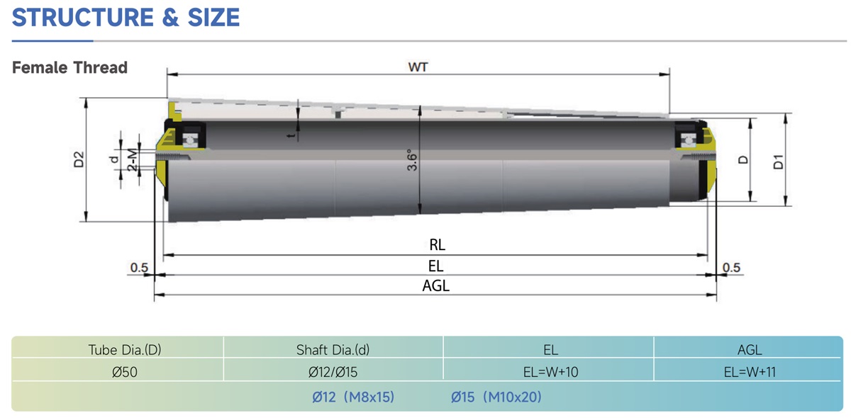 1. Base on the DP1200 Series, fitted with a grey/black Polymide taper sleeve.(Taper degree:3.6°)