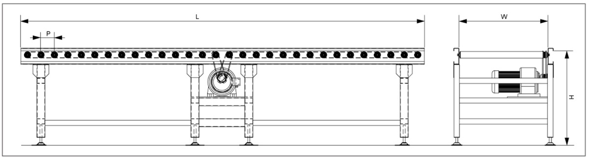 The most widely used roller conveyor for a conveyor line with boxes packaged. Applicable to the delivery of any type of product, whether it be in a box, a bag, or a pallet.
